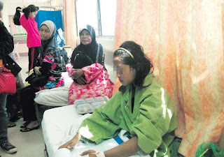 NOOR yang cedera selepas dibelasah 15 pelajar perempuan dirawat di Hospital Tuanku Fauziah, Kangar semalam.